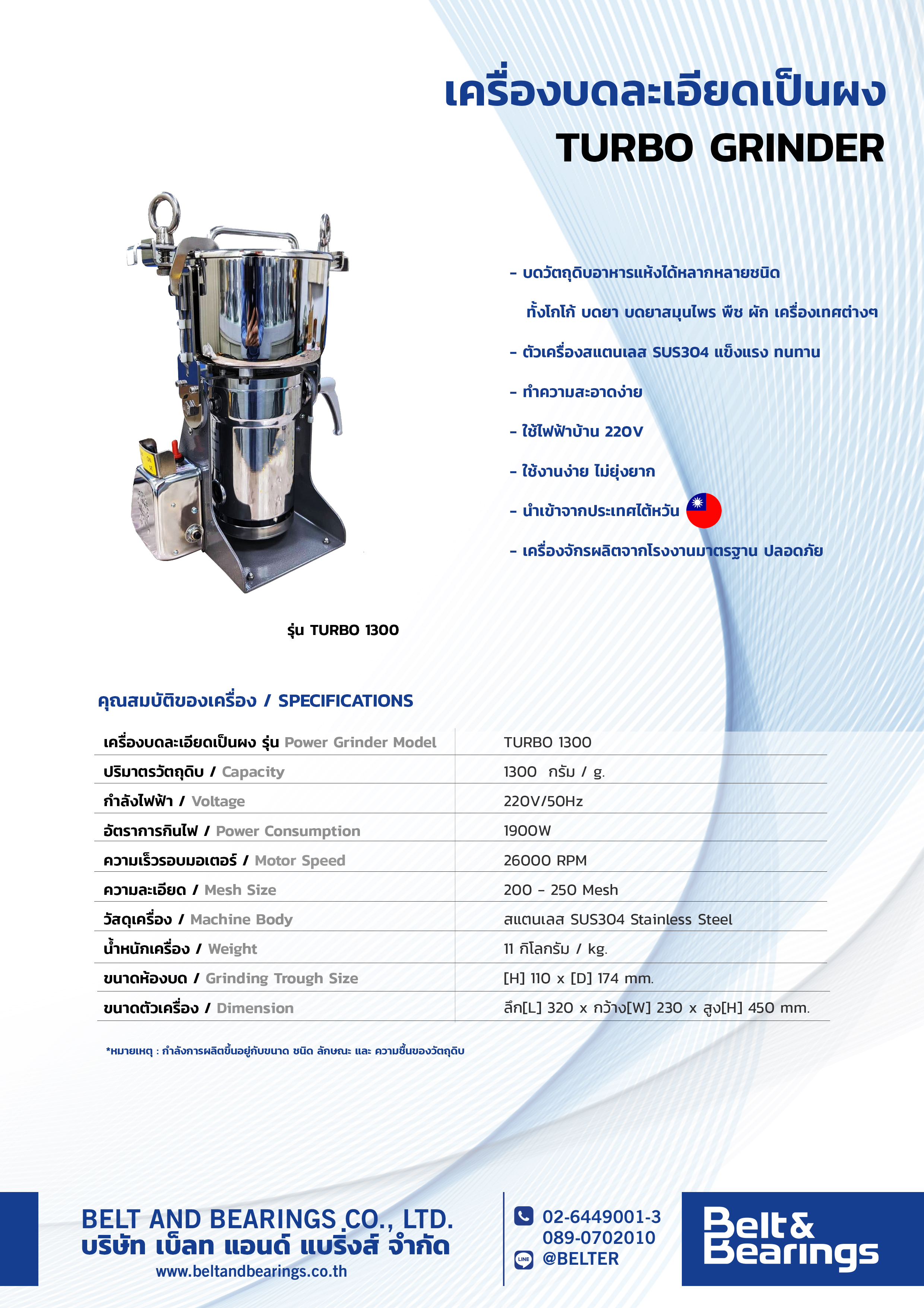 เครื่องบดละเอียดเป็นผง รุ่น / Power Grinder Model SAFETY1000