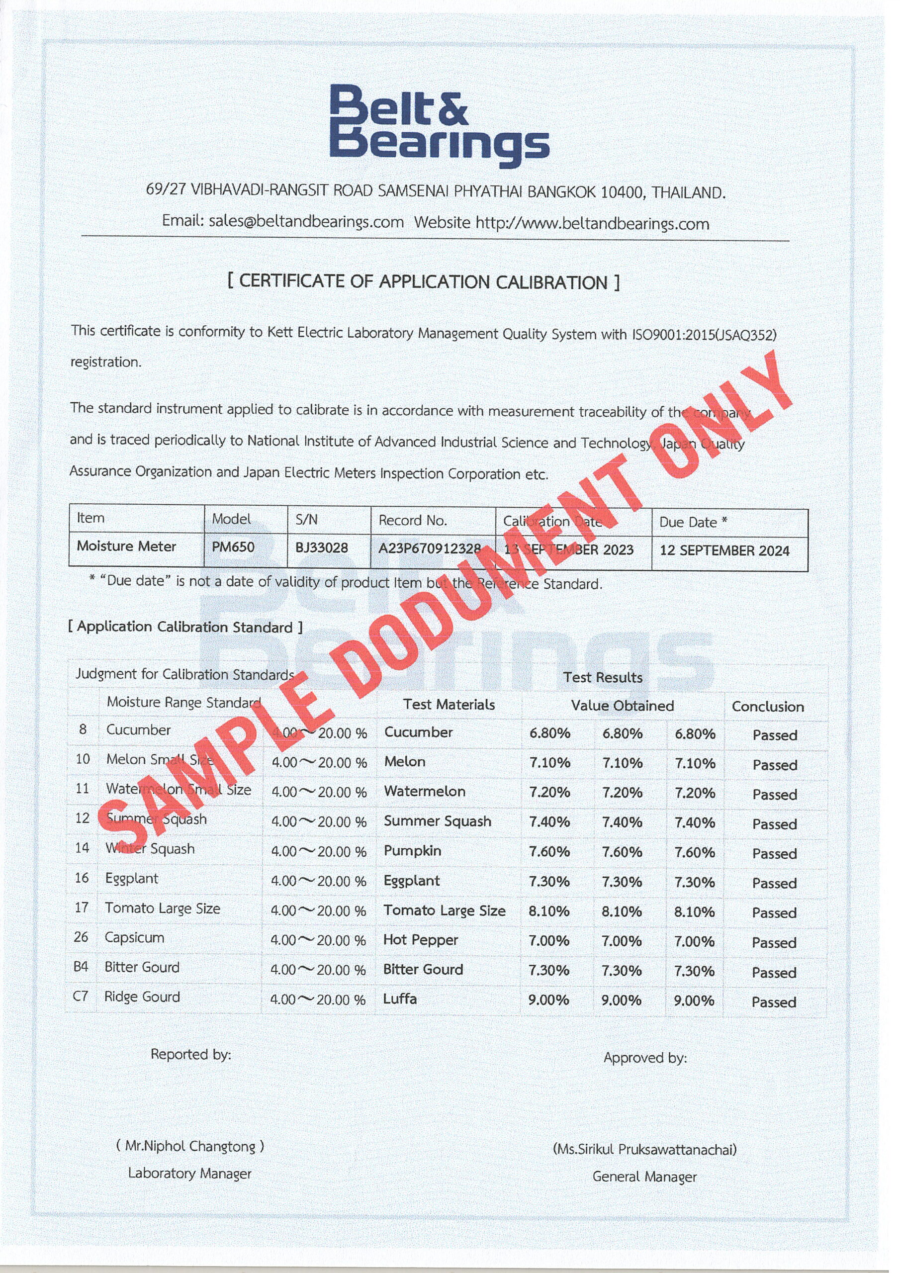 สอบเทียบเครื่องมือวัด สอบเทียบเครื่องวัดความชื้นและความหนาแน่น ผลผลิตทางการเกษตร กว่า 140 ชนิด KETT PM-650[6515] คาริเบทเครื่องวัดความชื้น เช็คประจุเครื่องวัดความชื้น