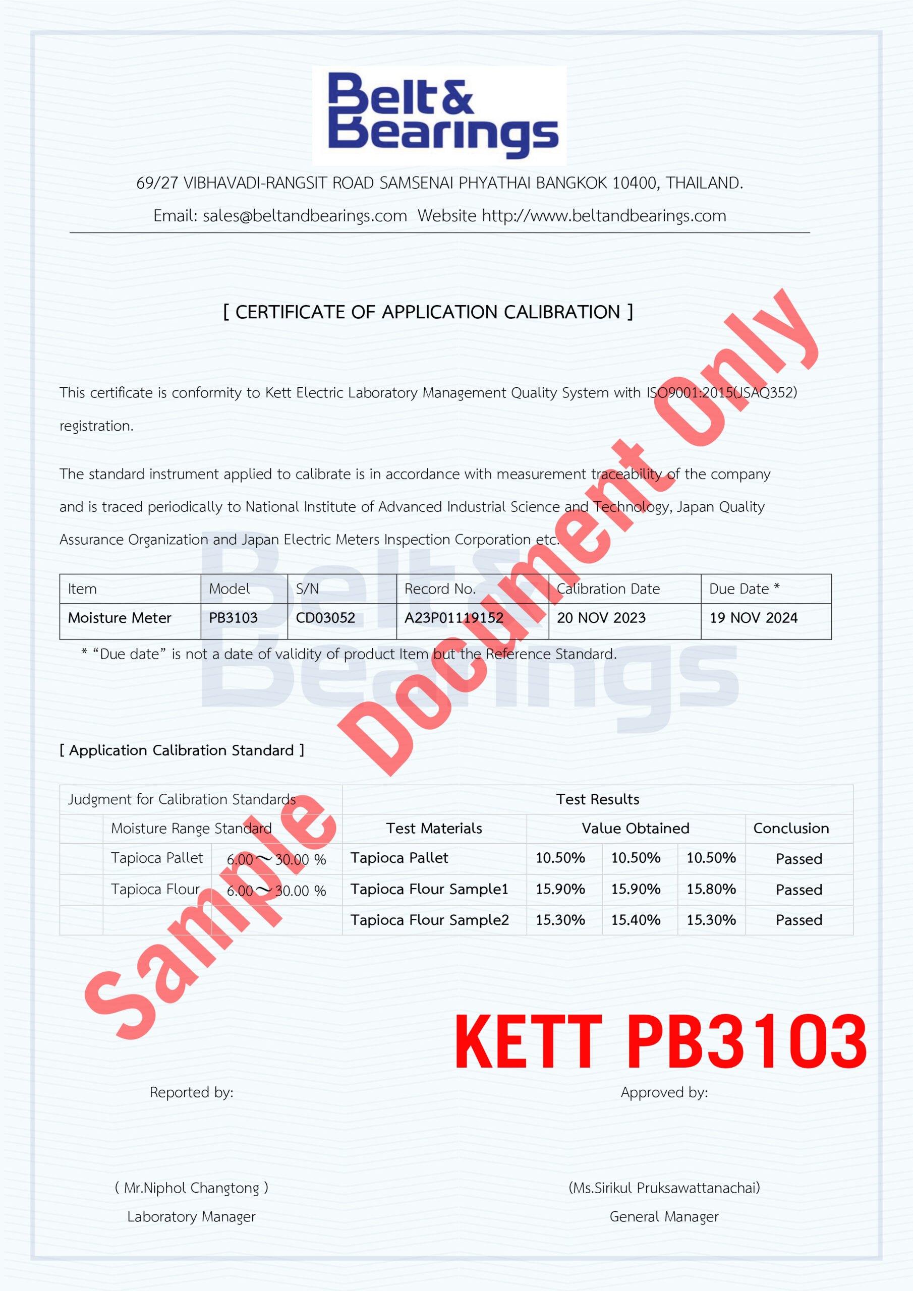 สอบเทียบเครื่องมือวัด สอบเทียบ เครื่องวัดความชื้น แป้ง มัน รุ่นด้ามกด KETT PB-3103 คาริเบทเครื่องวัดความชื้น เช็คประจุเครื่องวัดความชื้น