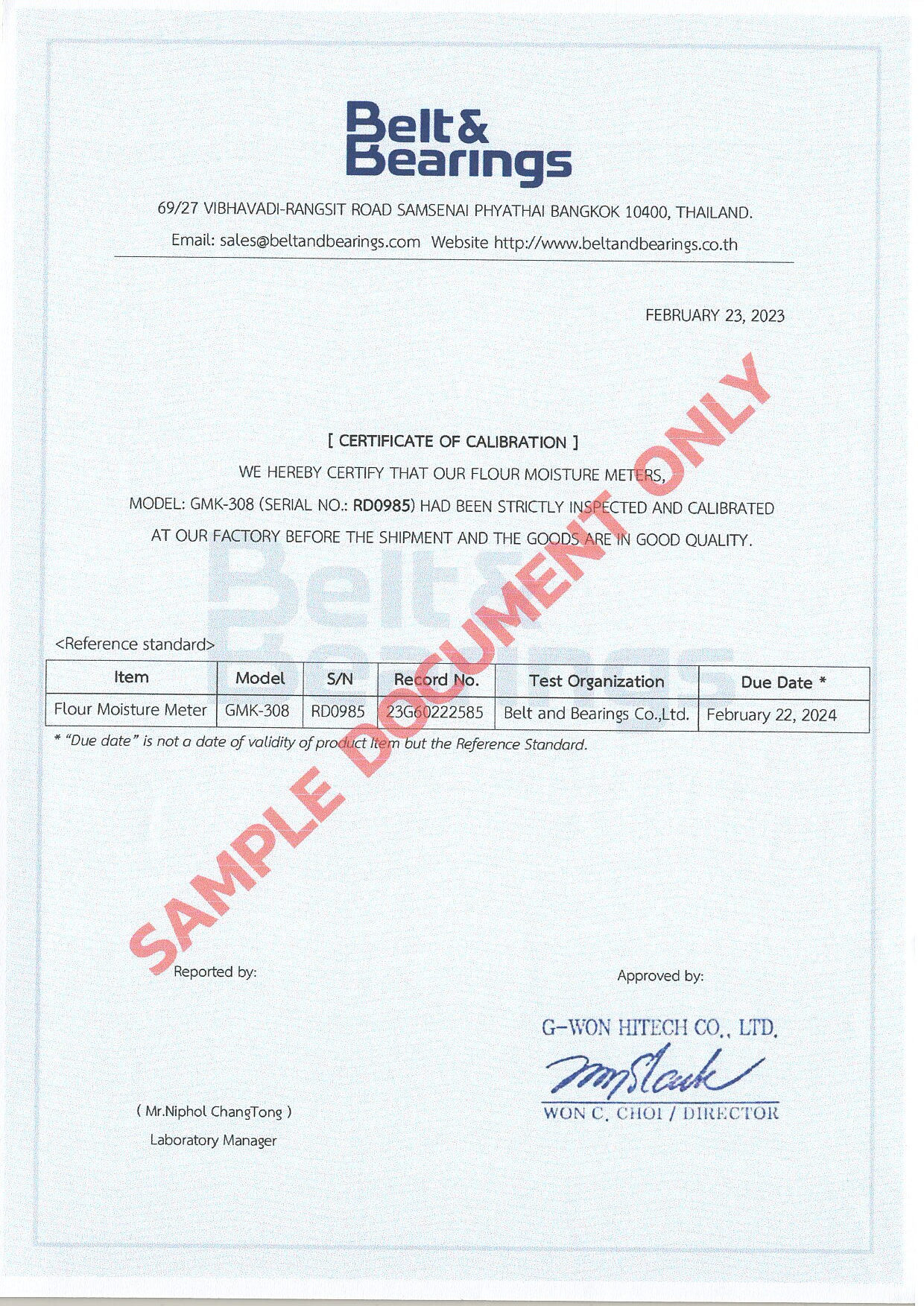 สอบเทียบเครื่องมือวัด สอบเทียบ เครื่องวัดความชื้น แป้ง มัน ผงแป้ง G-WON รุ่น GMK 308 คาริเบทเครื่องวัดความชื้น เช็คประจุเครื่องวัดความชื้น